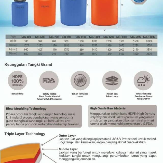 General tank buatan penguin yang juga dikenal dengan nama tangki silinder ini hadir dengan beragam tipe yang dibedakan berdasarkan kapasitasnya. Produk tandon tangki air penguin merupakan salah satu merk tandon yang sudah terkenal akan kualitasnya. Untuk informasi detail lainnya hubungi marketing 08126109. Tangki penguin kami dijamin original dan semua tangki penguin tipe tb dibuat dengan teknologi rotamould 4 yang sudah berstiker biocote (anti bakteri) tangki silinder penguin, tersedia hingga ukuran 30.000 liter, adalah model paling populer sebagai penampungan air ataupun kimia. Tangki penguin kami dijamin keaslianya (original) dan semua tangki penguin kami merupakan produk paling terbaru yaitu dibuat dengan teknologi rotamould 4 yang sudah berstiker biocote (anti bakteri) tangki silinder penguin, tersedia hingga ukuran 30.000 liter, adalah model paling populer sebagai penampungan air ataupun kimia.